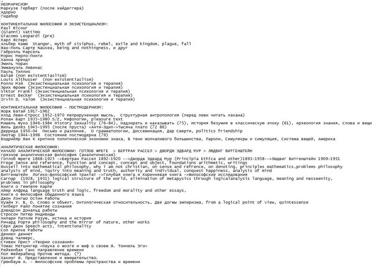 По аналитической философии перебор - а вдруг она ему не зайдет? Зачем столько авторов тогда, только запутаешь.