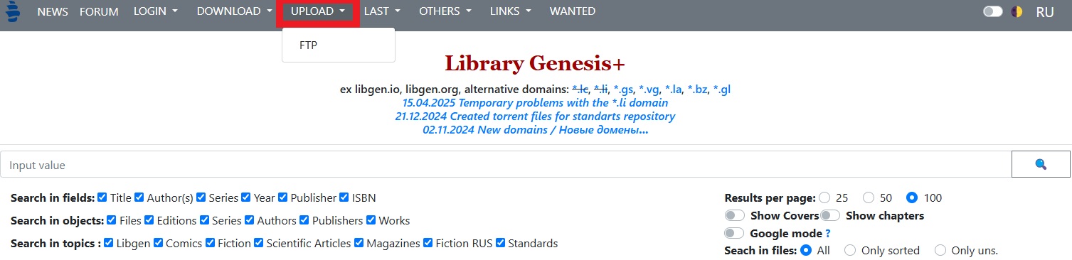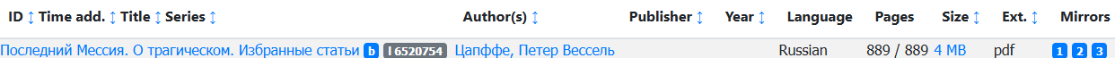 >>174837 Вы подтолкнули проверить, трудно ли загружать книги на Libgen (давно пользуюсь, но повода не было). И вроде бы совсем легко, так что не стесняйтесь это делать. Вашу книгу я загрузил, но когда появится - не понял, вроде написано было 5 минут, но пока что её нет, проверю сегодня-завтра-послезавтра