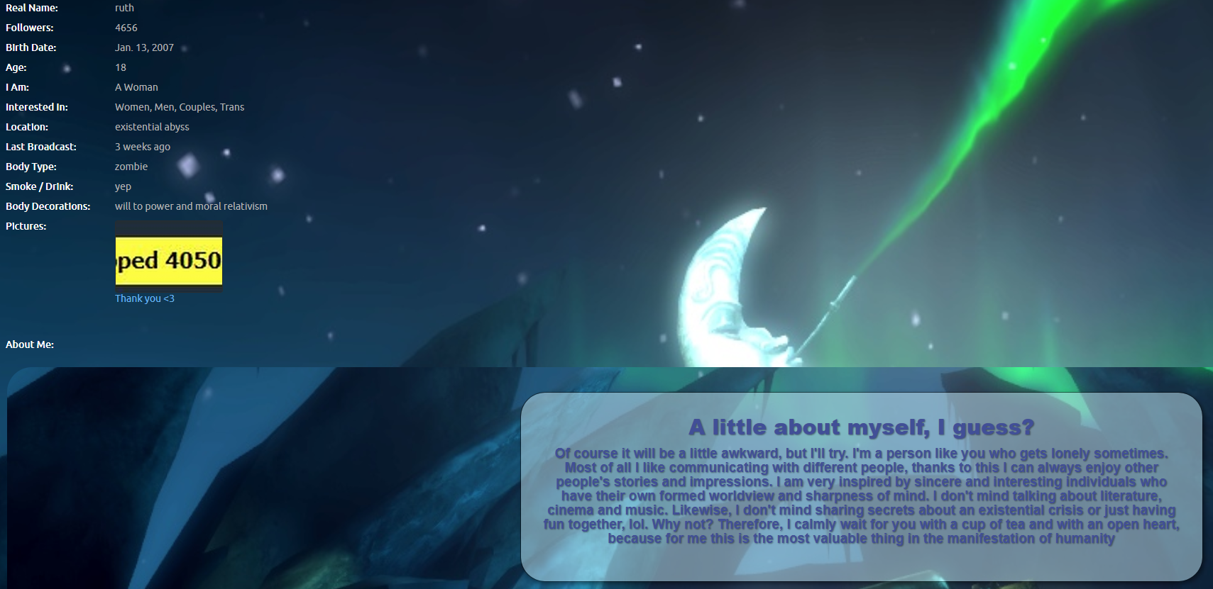 > можно найти еще повернутых на православии "традвайф" Это так выглядит с поверхности. Если мы возьмём генеалогию, то сейчас к этому 3 пути: 1. С рождения (от семьи) 2. Принятие (когда ударяется в сознательном возрасте). В первом случае (я такое наблюдал) это либо рассыпается с подростковым протестом, либо переходит в тихий брак Во втором, кто принимает сейчас религию и дл чего? Обычно для искупления и реализация ресентимента, это инвалиды и бывшие зеки/покаявшиеся, всякие бабки и вдовы. Для молодой женищны ровно одна причина - это повышение ликвидности, чтобы найти состоятельного содержанца а самой не работать, вот и всё. (например, такую идею продвигает Макс Вердикт). Деньги, деньги и комфорт. И их взгляды обычно это просто симулякр, который не реализуется на поступках и в душе, был мем что традфайф отличается не бодкаунтом, а томиком Евангелие на тумбочке.
