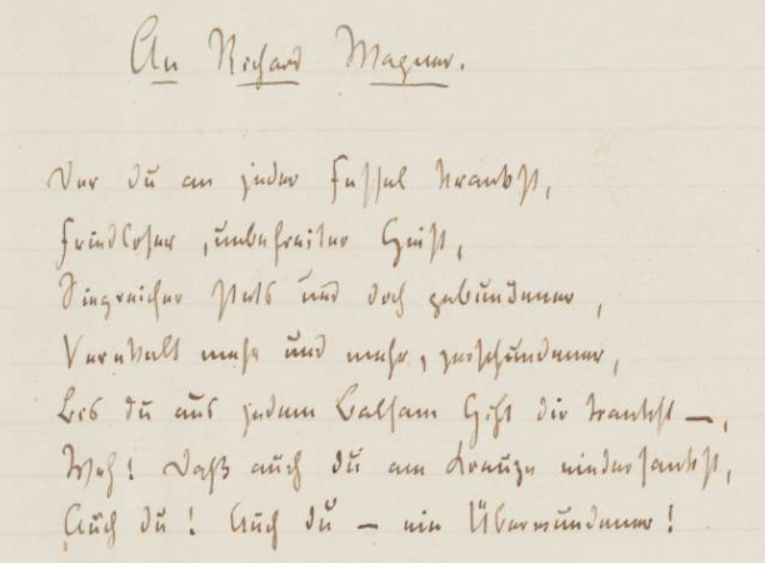 Oh Lebens Mittag! Feierliche Zeit! Oh Sommergarten! Unruhig Glück im Stehn und Spähn und Warten: — Der Freunde harr’ ich, Tag und Nacht bereit, Wo bleibt ihr Freunde? Kommt! ‘s ist Zeit! ‘s ist Zeit!... — Wir sind Hyperboreer, — wir wissen gut genug, wie abseits wir leben.