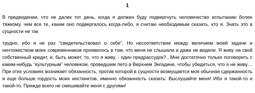 >(критически важные) "Ueber Wahrheit und Lüge im aussermoralischen Sinne" и "Die dionysische Weltanschauung" А я не спорю с ранним Ницше, спорю с поздним. Я подозреваю, что ты с ним не очень хорошо знаком. Есть индекс KSA 13, 12[1], изначально предполагавшийся для "Переоценки ценностей", хорошо иметь представление о том, что хотя бы в этих записях, а также в разных записях 1888 года (там в основном 1887) https://nachlass.apoliteia.ru/12-1-index