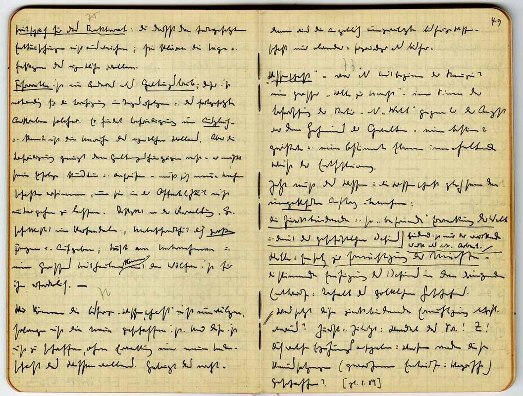 Exoterisch — esoterisch 1 — alles ist Wille gegen Willen 2 Es giebt gar keinen Willen 1 Causalismus 2 Es giebt nichts wie Ursache-Wirkung. 1. Alle Causalität geht psychologisch auf den Glauben an Absichten zurück: Gerade die Wirkung einer Absicht ist unbeweisbar. (Causa efficiens ist eine Tautologie mit finalis) psychologisch angesehn —