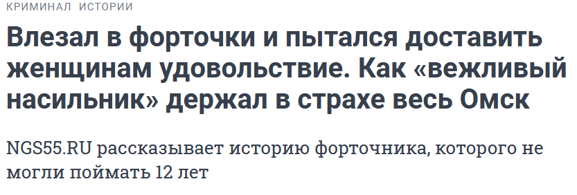 >>61136167 Пентовка всегда против душегубов плохо работала (см. истории ловли маньяков в Совке). В криминальной среде у них есть агентура, а этот —одиночка, ни с кем кровью не повязанный. Он может где угодно объявиться и отметиться.