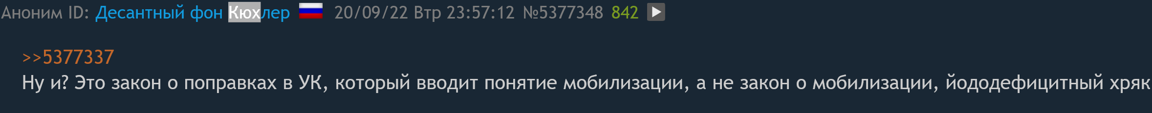 >>61137613 Ну, там ведь надгойсударственные договоренности. Типа, мобиков не привлекаем, только коконтрабасы, удары высокоточным оружием только по военным целям. Плюс определены цели, по которым даже не собираются бить типа мостов, а так же районы, в которые даже не сунутся, типа Одессы. Вот и нужно было сказать, что твердо и четко не будут набирать сроканов, дабы траханье в Пахомии охладить. Просто сказать, так не поверят, а вот такой спектакль разыграть -- вполне верю. Не дебилы же там работают. Тут и Дарья Дугина, и релейные шкафы и кремский мост и удар по кремлю и еще куча постановок -- многие верят же.