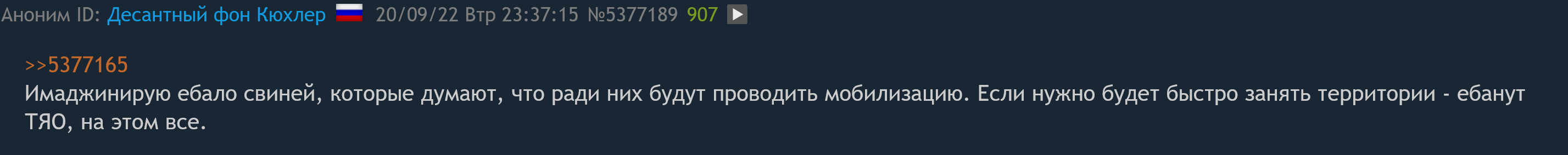 >>61137437 >Это как с мобкой было, на гос и около предприятиях запускали на территорию работников военкомата и автобусы Хз работаю на гос.предприятии такого не было, вообще не слыхал чтоб так где-то было. И насколько я знаю, тока на гос.предприятиях бронь дают. В сентябре\октябре 22г на соседнее очереди стояли чтоб устроиться)) >местным Сычевым в принудительно-добровольной форме прикажут подписать этот контракт. И с чего местные сычёвы его будут подписывать? Ты прям думаешь в гос.предприятиях умственно отсталые работают)