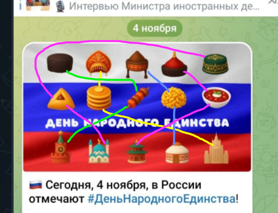 >>61138410 (OP) Тупорылый петушок приплел крест к картинке с национальными головными уборами и жратвой, сруские видимо на голове или в носу их носят, раз надо именно сюда это добавить...