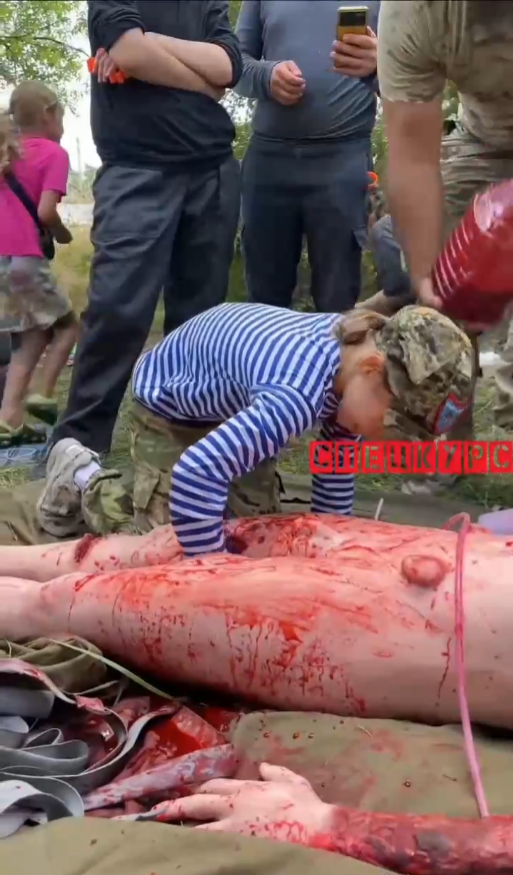 Сегодня в парке Фрунзе проходил фестиваль «Добрый Новороссийск», в котором участвовали НКО и волонтёрские движения. Очевидцы рассказали «Осторожно, новости», что среди стендов лежала реалистичная кукла, имитирующая голое тело мужчины с ранениями, а вокруг него стояли люди в военной форме: «Посреди парка лежит как бы раненый боец. Надо оказать помощь, люди в форме подзывают маленьких детей помочь». По словам местных жителей, дети от вида раненого тела «плакали и убегали»: «Мы были в шоке и постарались оттуда быстрее уйти».