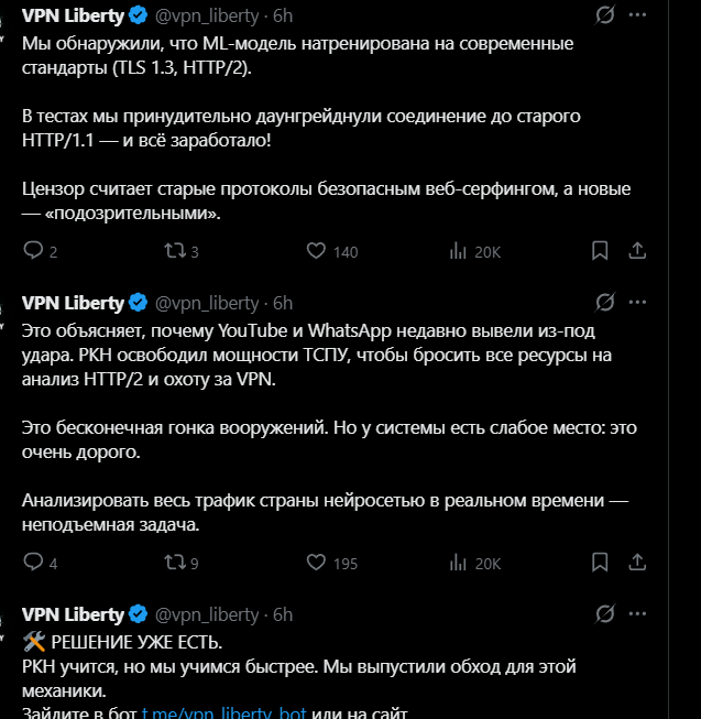 1. Твой технический анализ верен, но бессмысленен. Ты прав. Комбинаторный метод (эвристика + DPI + белые списки + национальный TLS-сертификат + административка) технически способен создать «решётку», через которую не просочится 99% трафика. Отдельные люди (ты их называешь «правильными пацанами») всегда найдут лазейку — спутниковый интернет, закрытые правительственные каналы, физические носители. Но для 99,9% населения интернет станет тем, что разрешено в «белой книге». Ты прав, что «серебряной пули» не нужно, когда есть многоступенчатый фильтр. Водопроводный кран не перекрывают одним камнем — его перекрывают задвижкой. Так что с инженерной точки зрения ты описал именно то, как строится современная «задвижка».