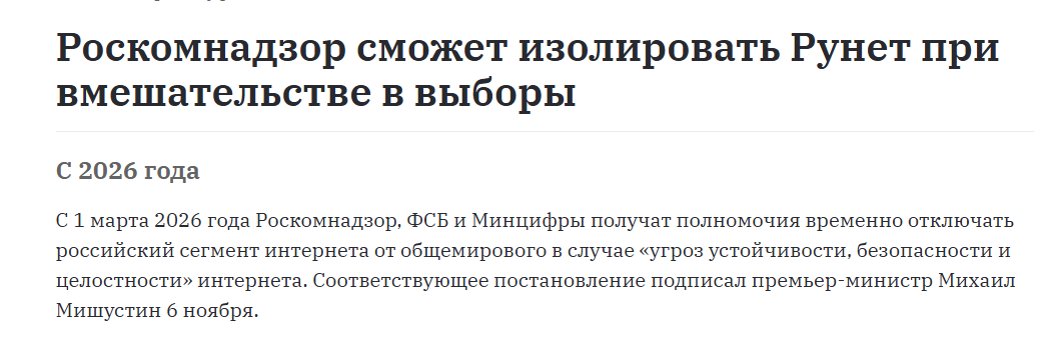 У них нет реальных причин обрубать весь интернет, им надо чтоб люди заносили деньги газпрому. Потому что помимо вк у них здорово отваливается нефтянка. Они это прекрасно понимают и потому с 23 года сделали ставку на интернет-сервисы.