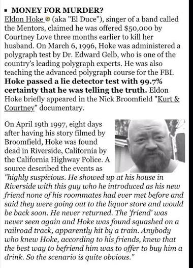 >>61862434 (OP) Этот человек - бывший муж дочери Курта и Кортни. Он утверждает, что Кортни организовала его похищение и убийство (но оно сорвалось, его спас друг).