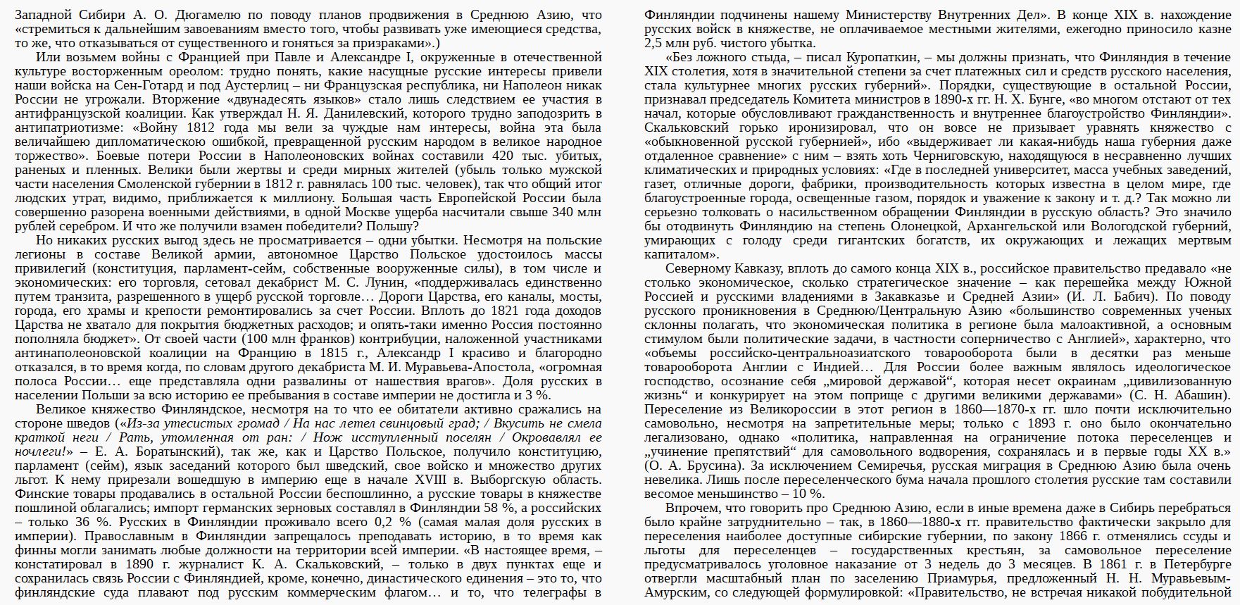 Во-вторых, иди в центральную Азию и скажи казахам, киргизам, узбекам, таджикам и туркменам какой неколонией они были. Тебя сразу пошлют нахуй за это, и будут правы, потому что по факту они были именно колонией. Можешь ещё на северный Кавказ сходить, и например черкесов спросить за то, что там Россия делала в этих местах и тебе очень много новой информации расскажут, которой в русскоязычных источниках особо нет (но она есть в англоязычных), кто там кого захватывал силой, и кто был чьей колонией.