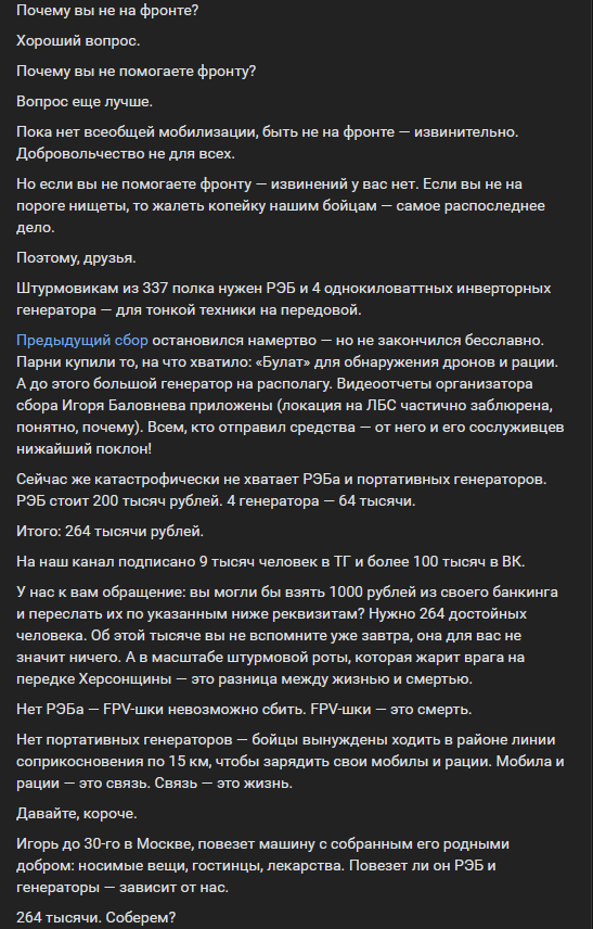 >>61866214 >>61866226 Паблик-сообщество от СиП сейчас живёт в полумёртвом состоянии. Если кратко, то 24 февраля они репостили слово ZАХОДИМ и молились за победу, потом пережили депрессивный эпизод, сейчас они собирают в основном деньги на экипировку. Так и живут.