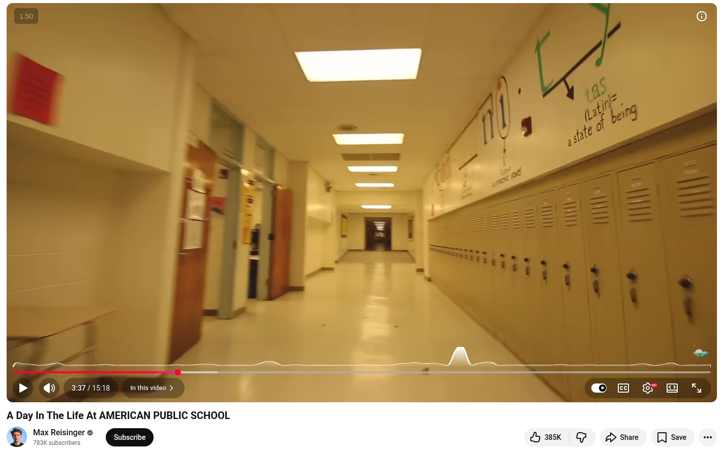 Ладно, это всё червепикинг. Посмотрим же рандомное видео про американскую школу от американского школьника. Там точно будут панорамные окна и вайба целая бетонная коробка.