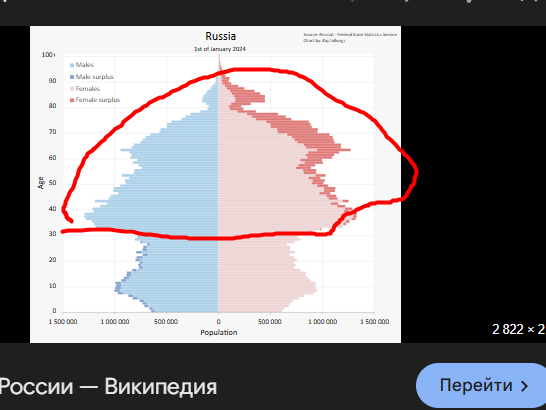 Средний возраст пидорашки 40 лет, бтв, страна активно стареет. Средний возраст погибшего в СВО такой же. Копрогулаг - страна сорокалетних, самого многочисленного поколения 80-х, их можно убивать еще лет несколько в спокойном темпе, что и происходит, по сути