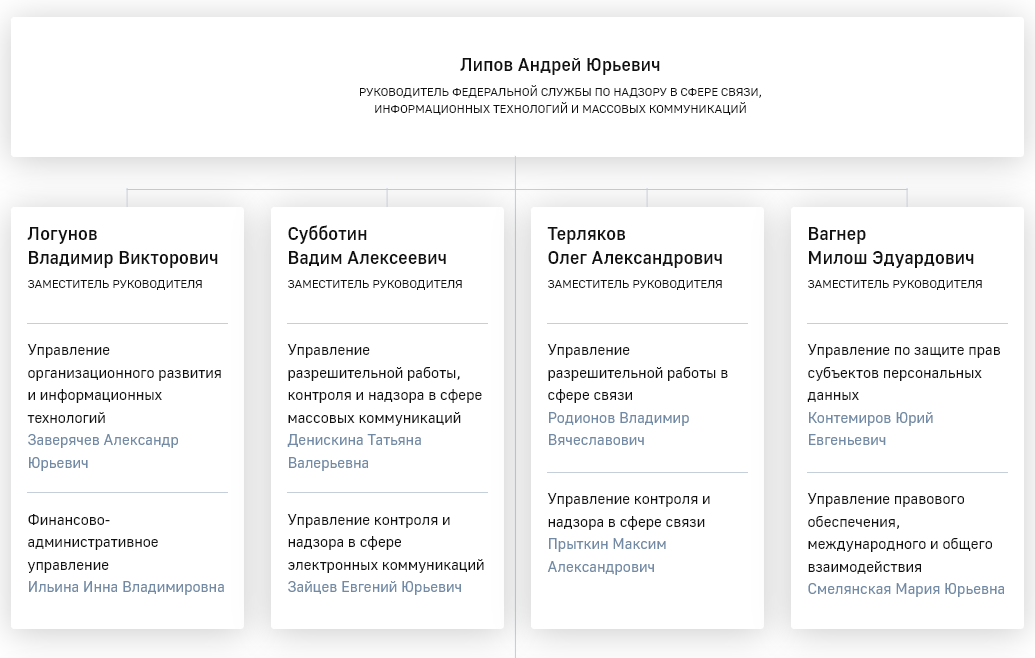Субботин Вадим Алексеевич Заместитель руководителя Управление разрешительной работы, контроля и надзора в сфере массовых коммуникаций Денискина Татьяна Валерьевна