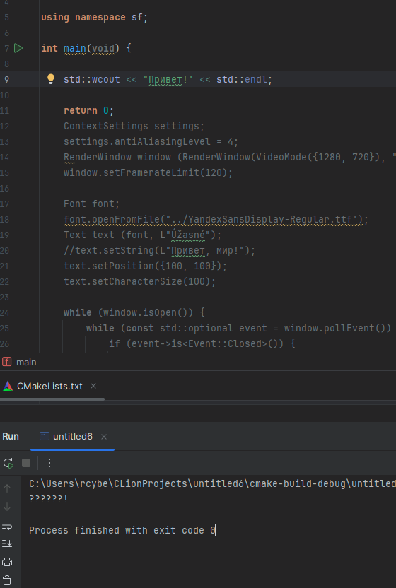 На втором скриншоте мы можете наблюдать то как SFML отрисовывает этот текст.