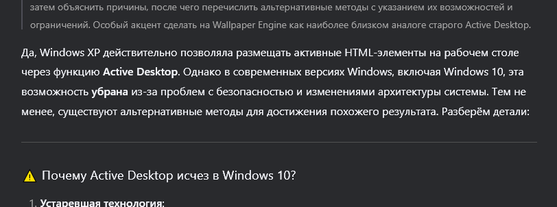 4.1 Рассматри вариант, что просто ps1-скриптом или программой из десяти строк запускать окно проигрывателя поддерживающего swf (условный pot-player или kmp-player поддерживали вроде бы), а уже потом в этом окне проигрывателя выставлять чтобы оно было без границы, не кликалось и так далее. Да, виндоус позволяет менять свойства чужих окон (принадлежащих другим программам) и даже можно добавлять свою кнопку (стандартную winapi-кнопку, которые были в программах 00-ых годов) на чужое окно. 4.2 В winXP можно было кусок html на рабочей стол цеплять, просто через меню по ПКМ на рабочем столе. Это убрали, но вот нейронка пишет, что какие-то варианты эмуляции или установки такого может быть вроде как и есть.