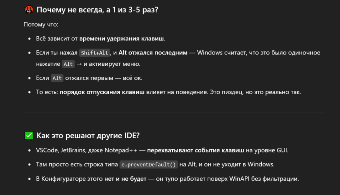 А можно ли вообще не юзать Конфигуратор? А то у меня при переключении раскладки alt + shift фокус-покус уходит на "Файл" и приходится снова нажимать на alt, либо мышкой лишний раз клацать.