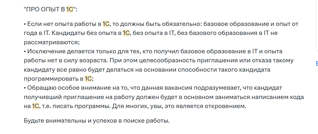 >>3470799 >чтобы на нее откликнулся сеньер Ну уж точно там не должно быть "консультирования и общения с пользователями", это даже для мида уже сомнительно, а для синьора зашквар полнейший.