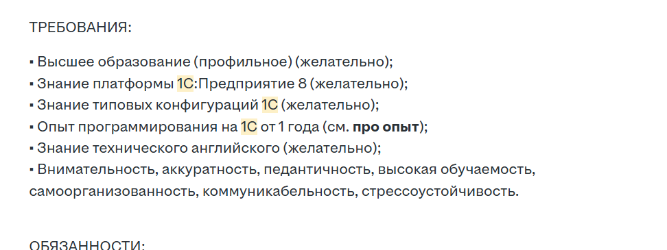 >>3470104 да дефолтное резюме, сисадмин 1с, дальше первый бит, дальше 2 фикса. вопросов тут вообще не должно возникнуть, всякие компании типа аптека плюс держат вакансии уже несколько лет, буквально год назад искал работу и точно помню их вакансию. реально ощущения как будто вакансий стало меньше и получить работу сложнее >>3470135 заочка же