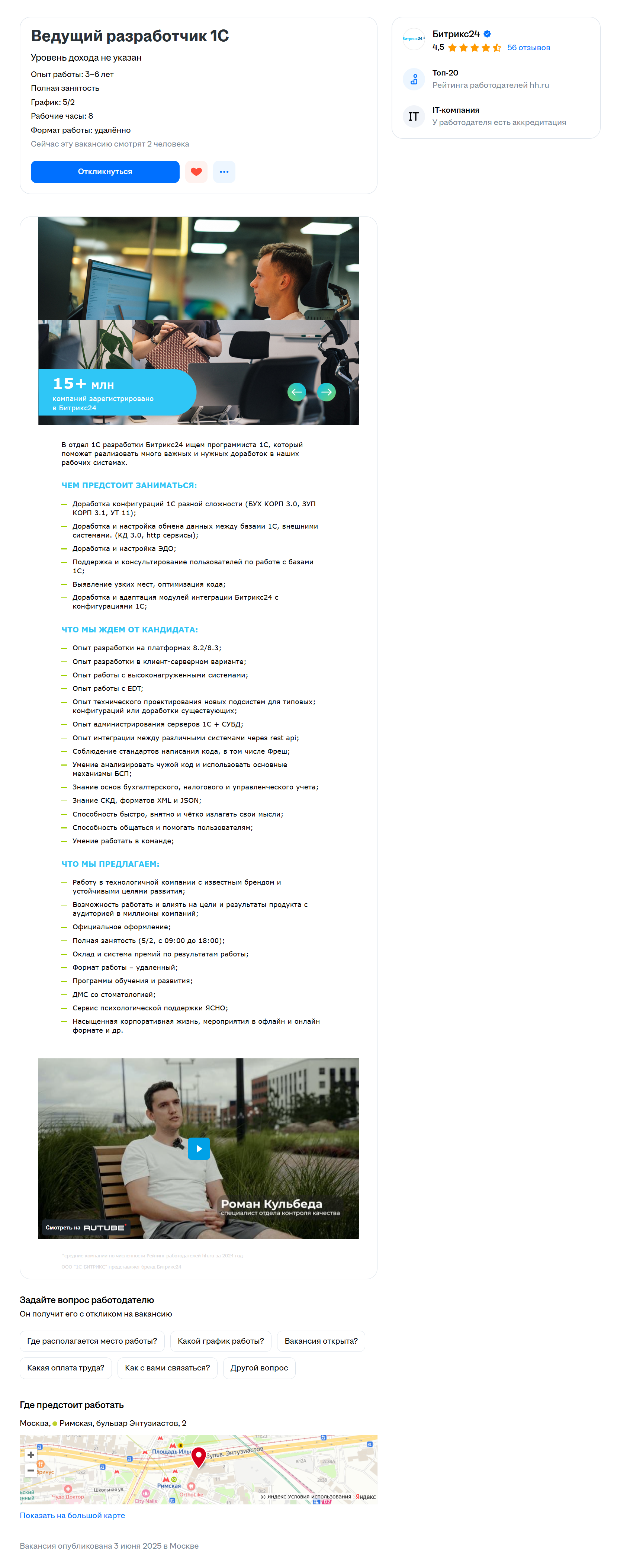 Кстати, на этой вакансии приветствуется творческий подход к программированию. Сможешь сделать многое "по-своему". Но дело твоё. Я, кстати, не HR вовсе.