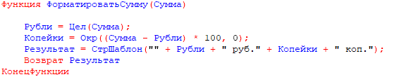 НИКАК как число преобразовать, что б у меня любое число например 100, преобразововалось в формат 100 руб 00 копеек? если делать через ЧислоПрописью то там целая часть всегда буквами пишется, причём есть "ДП" через которую можно дробную часть писать либо буквами либо цифрами, но нет такого же параметра для целой части, ПОЧЕМУ? Если зайти с другого конца то целую часть и дробную я тоже не могу отделить друг от друга, ну чё за хуйня такая, это же базовая вещь, неужели 1С такое не может?