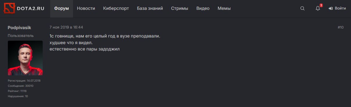 Итак, мои первые впечатления. Неожиданно для себе очень быстро привык к русскому языку. Может это копиум, но синтаксис "КлючевоеСлово...КонецКлючевоеСлово" показался даже красивым. С контекстозависимого символа "=" ахуел, не знаю, чем руководствовался разраб. Почему не сделали "Шаг" для цикл по счетчику? Само программирование на встроенном языке отдает чем-то ностальгическим, алголо-бейсико-дельфийским. Конфигуратор напомнил внезапно некоторые игровые движки, там тоже скрипты (аналоги модулей) прикреплены к UI-элементам. Процедуры и функции синтаксически неотличимы? Дело в том, что в некоторых диалектах SQL в функциях синтаксически запрещены операции, изменяющие состояние базы, я думал, что в 1С будет реализовано также. Судя по видосам и комментариям, среди вкатунов в профессию немало совсем ламеров, а также тех, кто берет и просто ливает через несколько месяцев, несмотря на перспективы роста. Кто-то считает, что бух. учет, торговля и прочие прочие безнес-знания скучными, по мне так это возможность в будущем попробовать себя в бизнесе.