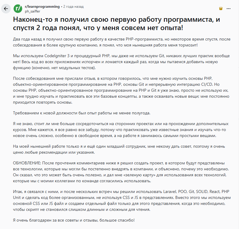 В: Бугурт от собеседований, программировать в 30 лет, съябываем из говнокодинга, обсудить новые рецепты маминого борща.