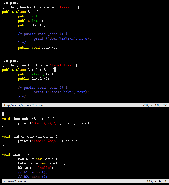 >>3575422 Извините за офтоп. Но это не ок, лучше пик. Так-как вызов b1._echo () тут не нужен. А без этого, или прямого вызова метода, вала не сгенирурет его C код, т.к. VAPI.