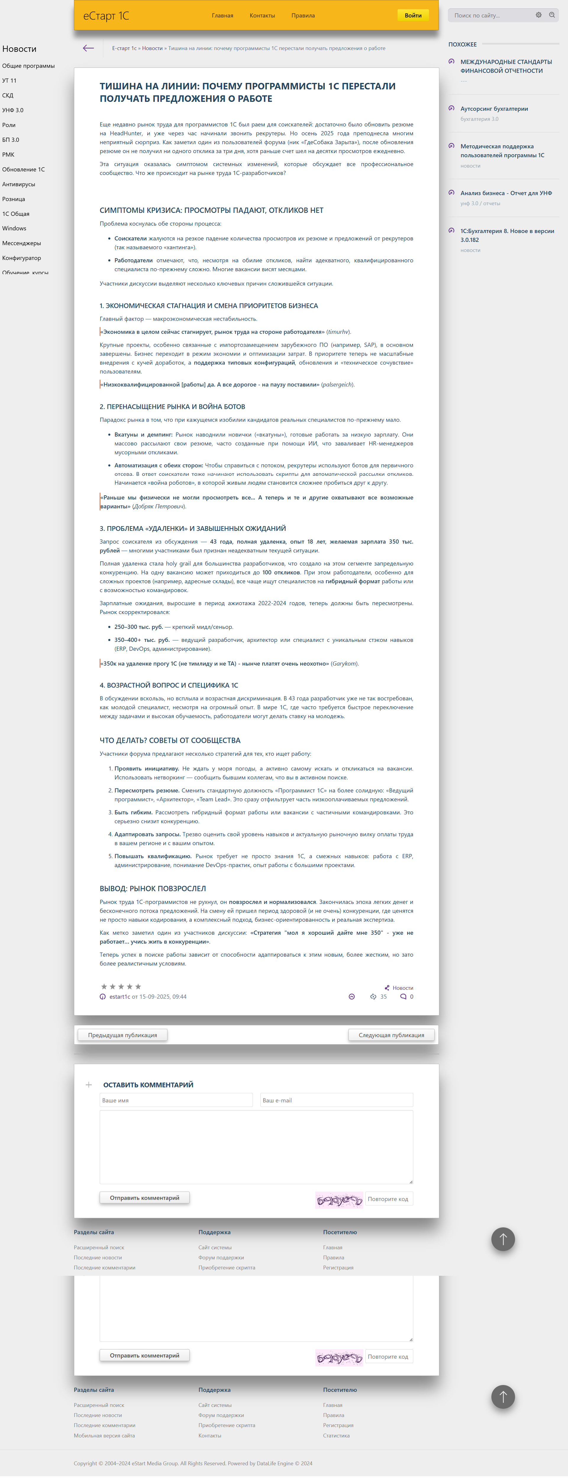 Единственная проблема в 1С в том, что в марте было 1450 вакансий "1С программист" на удалёнке, а сейчас меньше 800.
