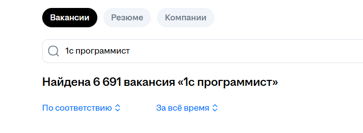 >>3576761 Это ты ещё не научился ставить галочку на "только в названии вакансии", и в исключения добавлять "Бит", тогда и вовсе остаётся 680-700 вакансий + 480 аналитик 1С + 150 консультант 1с + ~30 специалист техподдержки 1с.