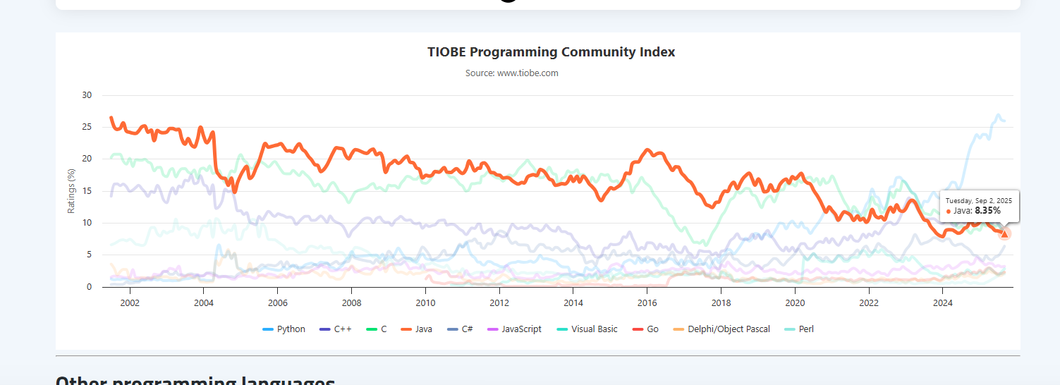 Плюс сейчас много поиска уходит в AI боты Stack Overflow из-за этого загибается, а эти вопросы не индексируются тиобе.