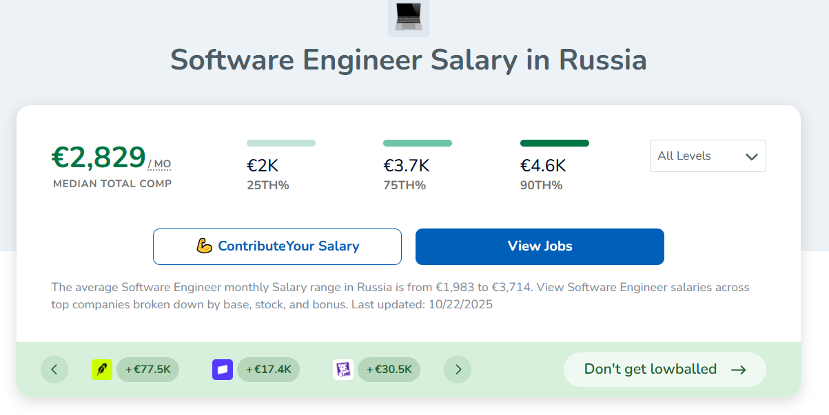 >>3569115 Хуйня какая-то, которую из жопы выковыривают. Где ты гофера с 2800 евро до налогов (на этих сайтах же пишут до?) видел? Джуны свежие с курсов? Лично мой доход после налогов вдвое выше, чем у другана сеньки в Епаме в Польше. Вдвое вот прям ровно вышло в сентябре.