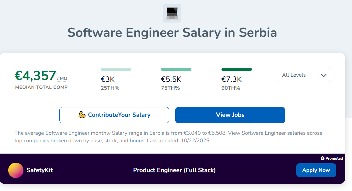 >>3569086 В Сербостане зепки всё ещё жирнее чем в рухнуме, а хату можно за 500 евро снимать + лично знаю челика что получил оффер в сербский яндекс на 8к евро в месяц на руки. В нашем яндексе таких зп у разработчиков просто нет.