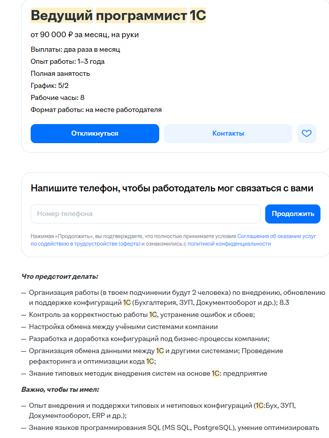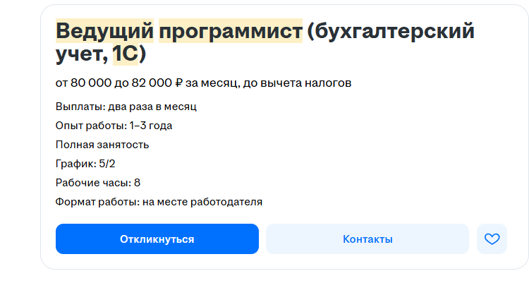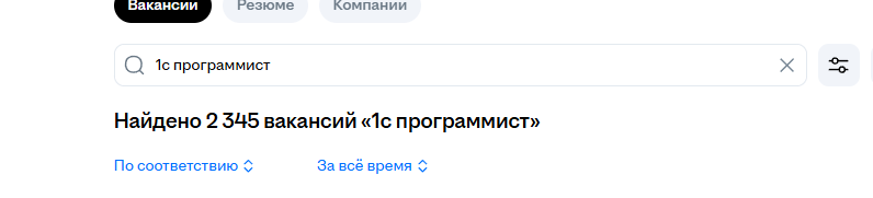 Предлагаю как то зоонаблюдать за рыночком, держать руку на пульсе так сказать Вот допустим если я просто введу 1с программист то там в выдачу лезет вообще всё свзяное с 1с, консультанты, бухгалтера и т.д. Надо врубать фильтр "в названии вакансии" как минимум, ну и до кучи удаленки отслеживать, вряд ли ктот о поедет в мухосрань на 50к тел ради работы Итого 1ая цифра и 2ая, эти 2 цифры я буду каждый месяц обновлять и добавлять в файлик, так и узнаем ВСЁ или не ВСЁ