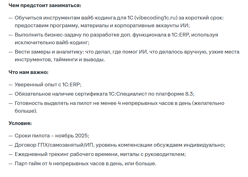 Всем доброе утро мужики. Прочитал ваши дискуссии насчет ии и хотел бы вставить свое мнение. Многие помнят, что прошлой весной каждый в треде трясся из-за сбер ЕРП. Месяцев 8 прошло с того момента? И чего и что? Ничего не произошло Вкатуны, вас специально пугают нейронкой такой же вкатун, чтобы конкуренции было меньше. Не слушайте его пацаны. Потихоньку помаленьку учитесь и вкатывайтесь. Тут кто то про гемини и клауд написал. Ты совсем ебаклак что ли? Забыл, в какой программе ты работаешь или что? Максимум яндекс алиса будет кабану код диктовать из колонки, а кабан сам нажимать на кнопки Не переживайте мужики айда к нам в 1с)