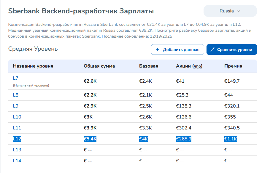 >>3590780 >>3590931 Я просто не разраб, а аналитик. Подозреваю, им меньше платят, чем уважаемым господам-разработчикам. По крайней мере такие цифры я видел на levels fyi.