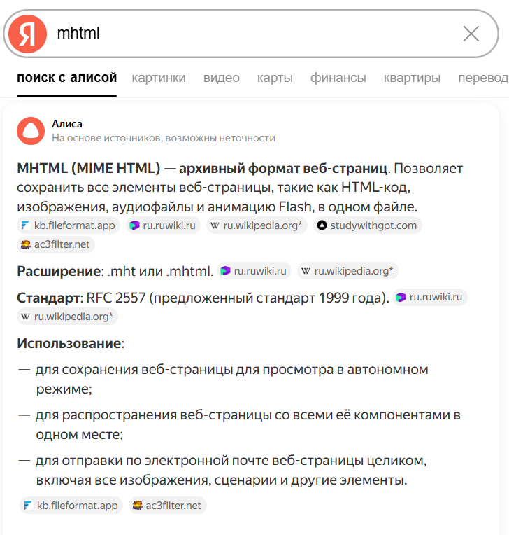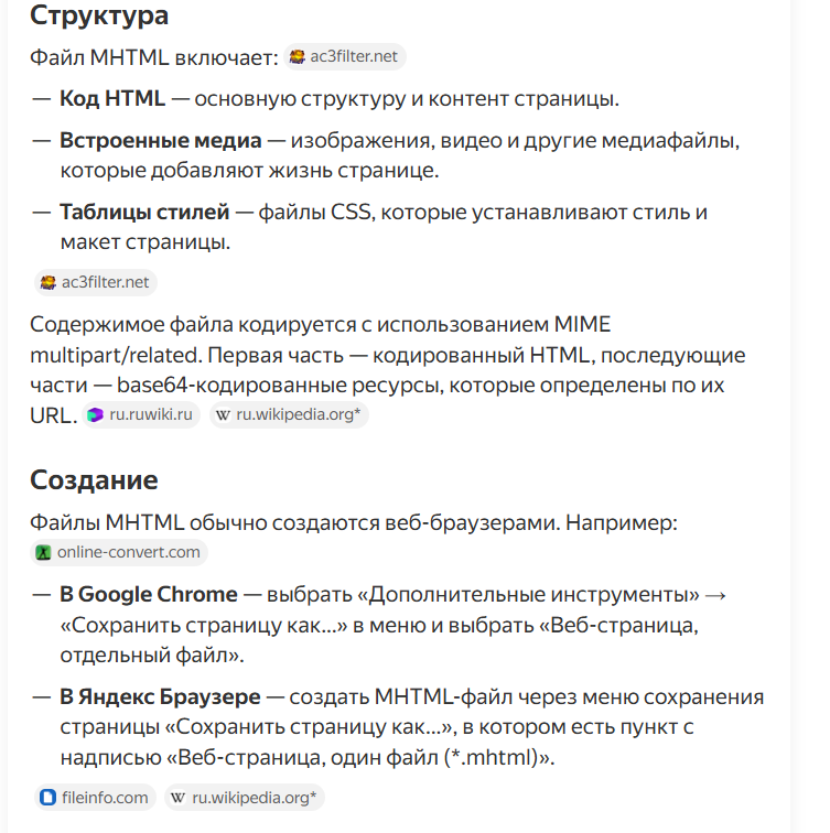 >>3602846 >MHTML Совершенно не то, что мне надо. MHTML - это весьма примитивный слепок видимой браузером веб-страницы. Может, полезно, чтобы локально почитать недочитанную статейку. Я попробовал - и сохранённая страница даже не включает в себя уже подгруженные скрипты, т.е. это именно застывший во времени слепок.