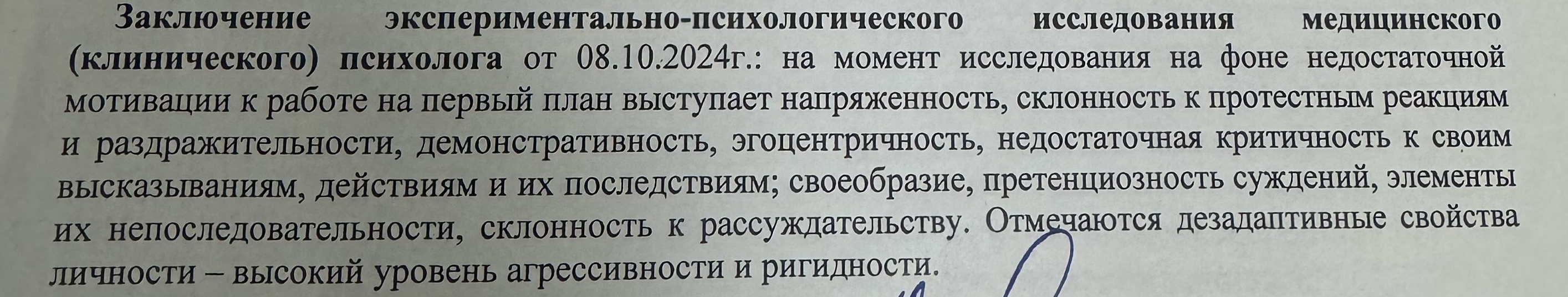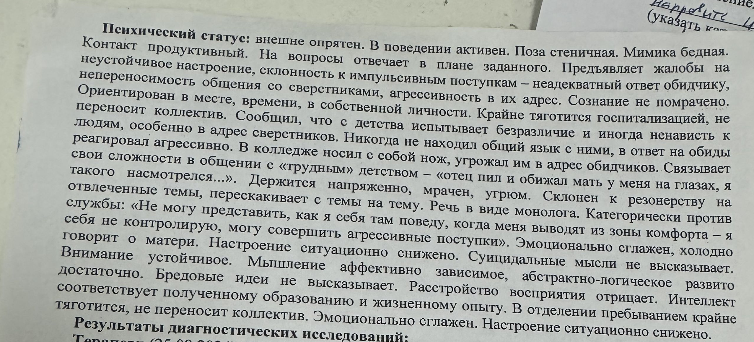 ПЫ.СЫ. Проскипал результаты анализов, оставив лишь результаты общения с психиатром и исследования клинического психолога