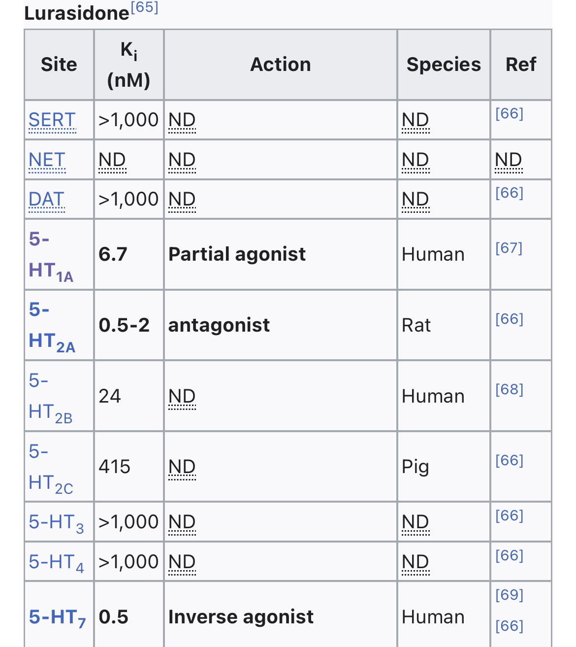 Если жрать латуду вместе с антидепрессантами, то она не перебьет эффект последних? Интересует именно 5-ht1a, мне где-то тут говорили, что у серотонина 0.5 Ki связывание, а у луразидона больше, получается это не повлияет на эффект АДов? Или я что-то путаю?