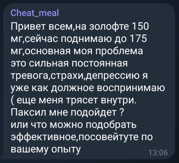 >>1857230 Мне добытые бензы и плохие мысли подуменьшали если те от объективных причин. От всяких нелепых навязчивых мыслей, иногда чисто ОКР-ных, помог ацц.