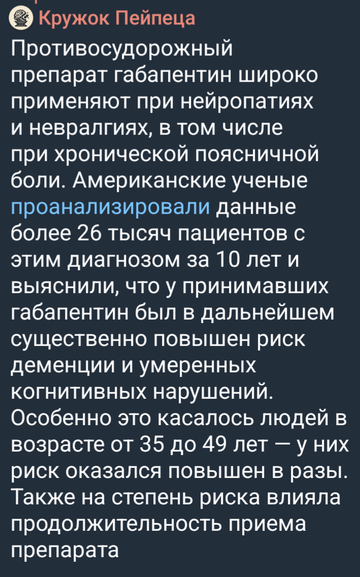 >>1860465 Открою секрет, но с ГАМКами также, только там не похуй на всё,а апатия тотальная (об этом прямо пишется в побочках), речь естественно о лечении вдолгую. Габапентиноиды же вдолгую это почти всегда отвал когнитивки, чек побочки и соответствующие сабреддиты, каждый второй пост о брейнфоге/отупении. И если при тревоге еще можно выбирать между серотоксином, гамкотоксином или габапентинотоксинами, разменивая терапевтический эффект еа побочки, то при апатичной депре делать вообще нехуй в этой стране, дофамина просто не существует ни в каком виде (кому нравится жрать всякие астры2959 которые даже на людях не испытывались - удачи), только ИМАО, но и те залевают нахуй ненужным при апатии серотоксином больше чем всем остальным