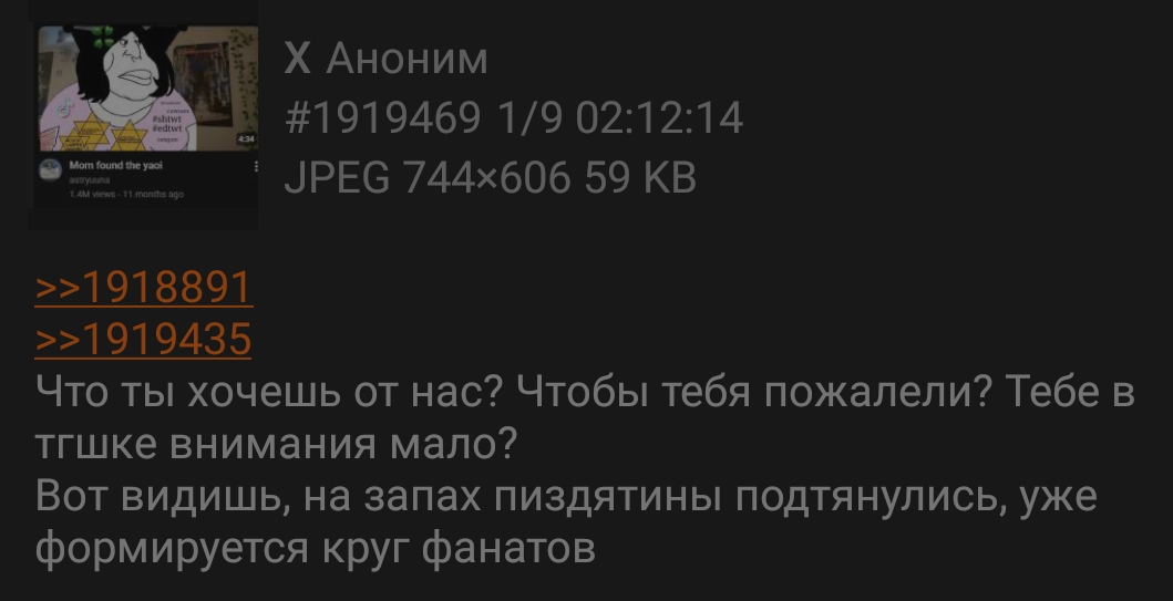 >>1924480 Без повода никто ни на кого не кидается. Кроме как на дваче.