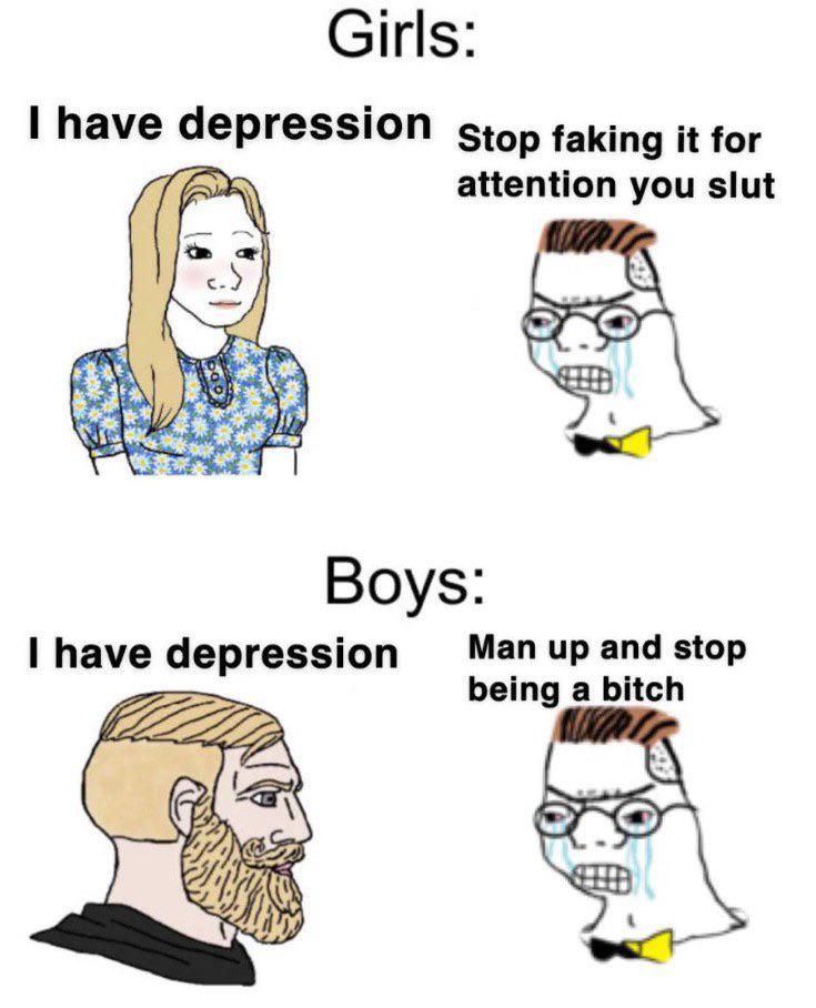 Кун 22 дал, словил депрессию ( как я думаю) с лета из-за ряда неудач в личной жизни, и ебучей армией, которая маячит после вуза, нет желания ебашить на работу, снимать отдельное жилье, вообще что-то делать, зная что ты проебешь год жизни из-за этой хуйни. Ходил с октября к психотерапевту, сдавал психологический тест ( показал депрессию 9, тревожность 10, не ебу какой опросник я проходил в целом дохуя, сидел там около часа), психотерапевт сказал что все заебись у меня, и я вообще не психотерапевтичный, да и люди в целом не амбициозные, поэтому я лежу после 4 часов работы у родственника и смотрю в потолок, параллельно плача из-за своей никчемной жизни. Ходил к психиатору по месту жительства, была молоденькая девочка, сказала что выписал бы мне АД(но какой не сказал в целом) и понаблюдали бы за динамикой. Но я на следующий день лег в психушку от военкомата, и отлежал там 10 дней. По итогу из 7 человек в палате я единственный кто не получил диагноз, хотя мне было похуй на то получу ли я категорию для военника из-за диагноза или нет, я хотел чтобы мне подтвердили мою депрессиию и назначили ебучее лечение , но на комиссии решили раз я могу ебашить в зал 3 раза в неделю, работаю целых 4 часа в день 5/2 и общаюсь с друзьями , то у меня все ахуенно, а то что у меня нет смысла жизни, постоянная тряска и я рыдаю навзрыд как сучка, посткоитальная дисфория, не могу нормально общаться с тян в целом и трясусь из-за того что девственник, проебал все либидо ( гормоны я сдавал все в целом в пределах нормы) - комиссии похуй, и вообще сказали что я уклонист. Так к чему вся это Стори, есть ли у меня реально депрессия или я просто изнеженный жизнью зумер и патологический лентяй? Мне просто нужно найти нормального мужика психиатора, а не ебаную бабу, которая скажет чё ты не можешь перестать дрочить по 7 раз в сутки, или чё сложного найти девушку, ещё я ни разу не говорил , но в момент сильного стресса у меня ебанутая агрессия, я готов все ломать, ебнуть себя или окружающих, но я сдерживаюсь, просто это я никому не говорил, потому что 100% посчитают ёбнутым и обколят галоперидолом.