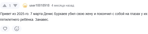 Ждём, когда лет через 15 Роман Денисович Бурхаев напишет свою "Другую химию", о своём детстве с поехавшим батей и о кровавых событиях 7 марта 2025 года.