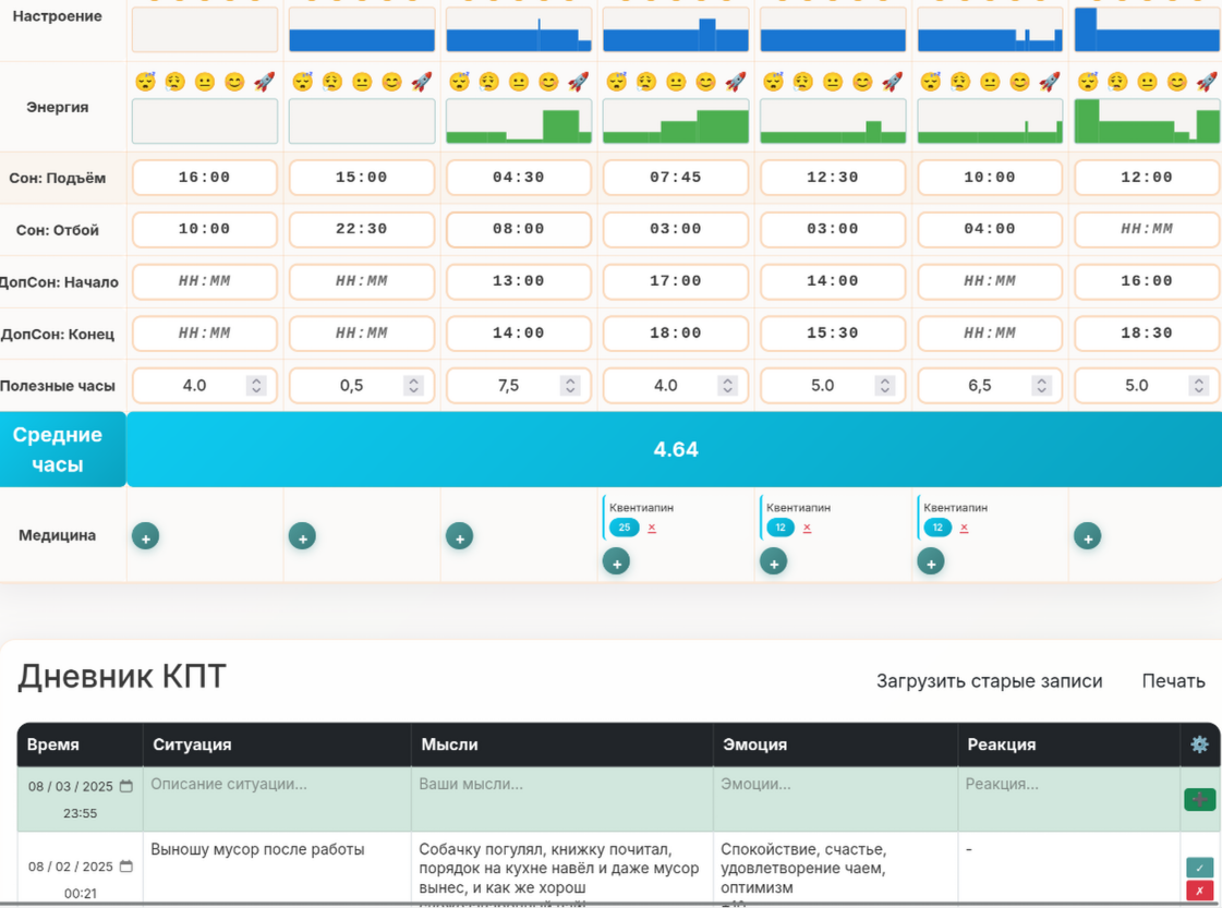 У меня состояние глубокой тревоги и безнадежности , не связанное с внешними обстоятельствами почти никак, при этом мне тяжело общаться с людьми и я не могу справиться со своим состоянием совершенно никак, только упорно пью трилептал и надеюсь непонятно на что Пью препарат от мигрени и давления Карбамазепин не подошёл как будто, увел меня не туда Дал плохое состояние на фоне тревоги Стрессовую реакцию Оланзапин делает меня человеком , только спать от него хочется поэтому я стараюсь пить его на выходных, по сути оланзапин единственный действует на все негативные проявления : тревога паника слезливость, после ночи под оланзапином утром чувствуется ясность ума и тревога уходит на второй план, а с анаприлином вместе ещё уходит и паника Трилептал из этого состояния полностью не выводить но в связке с оланзапином даёт более менее стойкий результат По ощущению смена фазы вроде бы Депрессия уже не так чувствуется, может этот карбамазепин просто не мог из фазы переключить , поэтому от него и было плохо С 18 июля по 6 августа тяжелая фаза депрессивная