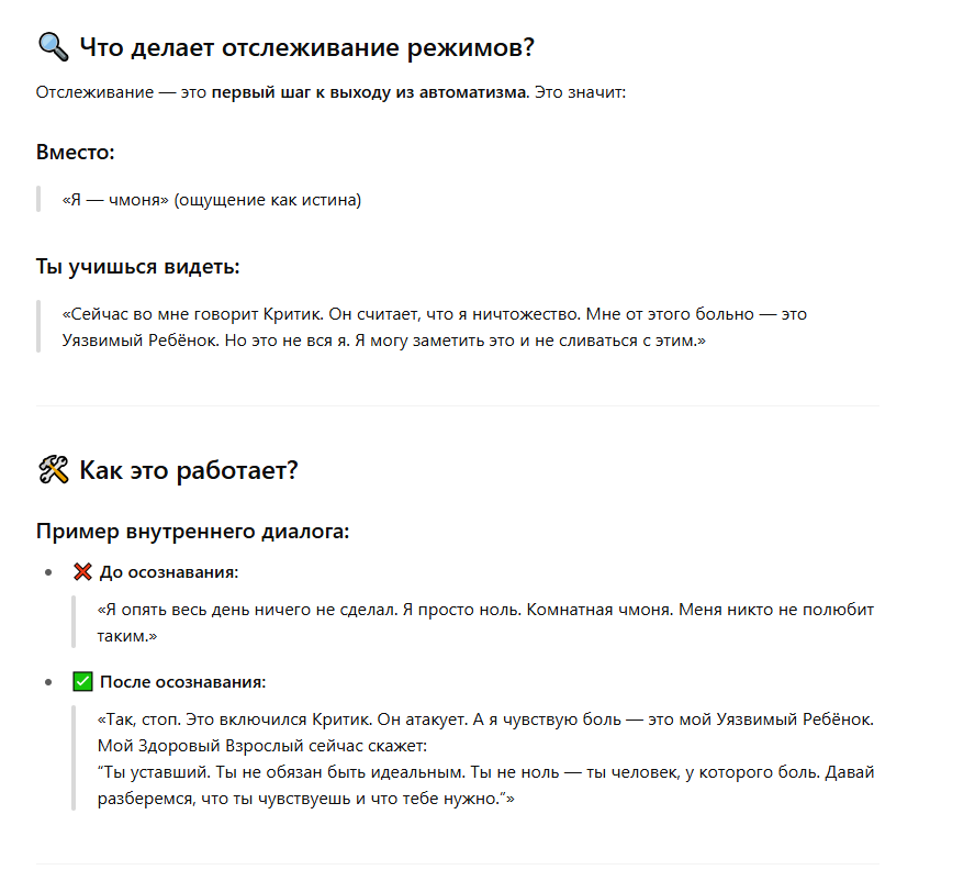 Ну и да, можешь ещё с дипсиком, гптшкой обсудить. Задай ему свой вопрос, да опиши, чтоб действовал как КПТ/АСТ психотерапевт. Скорее всего он тебе предложит всё то же самое, что и я.