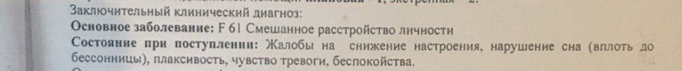 Помните меня, психаны? Вы еще смеялись над моим коктейлем препаратов. Поменял психиатра. Теперь пью квет 50, трилептал 300 и амитриптилин онли, диагноз ПРЛ. БАР2 поменяли на ПРЛ.