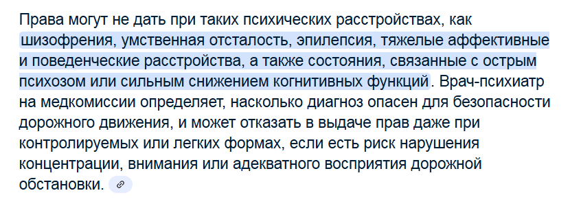>>1879718 они ссылаются на какой-то там определенный закон, мол с таким диагнозом они априори не могу выдавать разрешение на вождение авто, даже если я уже долго в ремиссии