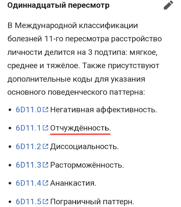 Ага. И она говорит ПОЧЕМУ они ГОВНО. Потому что в один момент ты гордый человек с нарцисическими чертами - но тебя закенсилили в твиттере за кринжовую шутку. Ты декомпенсировался. ВСЕ у тебя расстройство. Или ты 8 лет был крутым преступником. Попался. Словил от этого дистресс и дезадаптацию - получил диагноз. И она говорит что оценка по РЕАКЦИИ ОБЩЕСТВЕННОГО МНЕНИЯ для постановки диагноза это БРЕД.